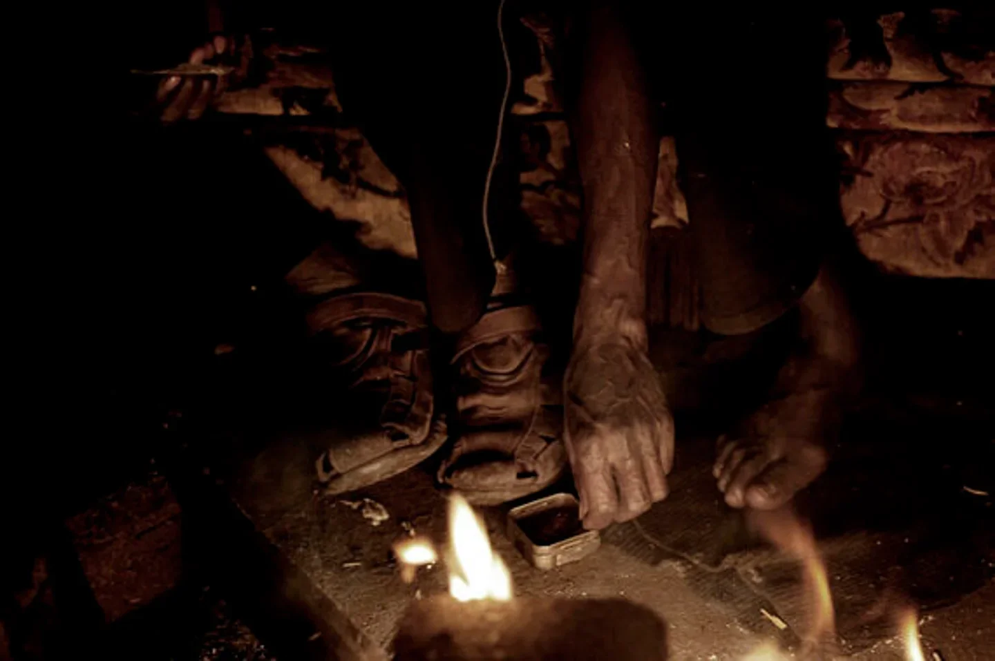 Sadik's thirteenth pair of shoes. Sadik also walked, for two years, to get this far. I offer to help him find another pair, telling him thirteen is not lucky but he says: 'These are the shoes, the ones that will get me to England.'